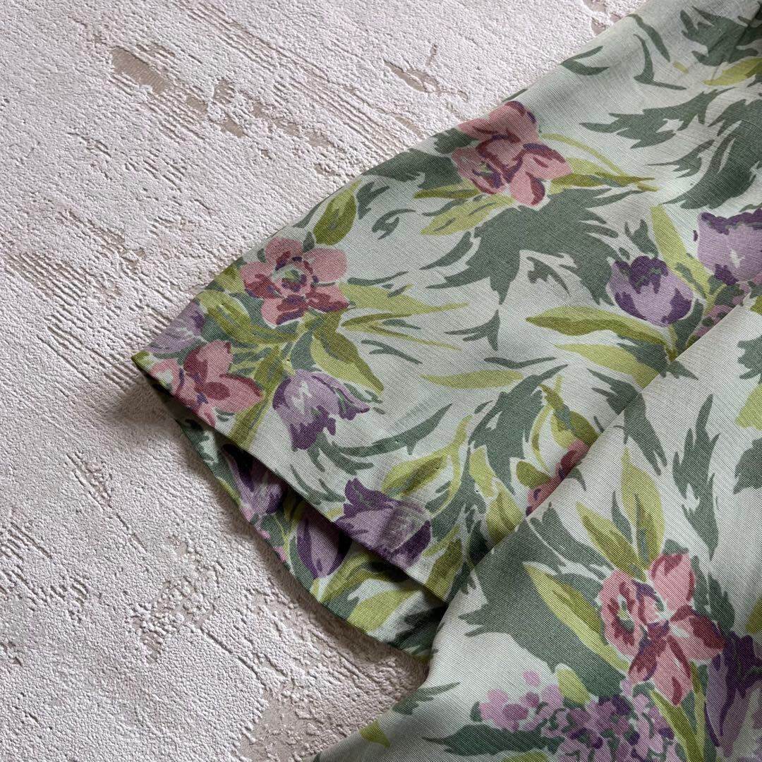 ローラアシュレイボタニカル柄半袖ロングワンピースグリーン13号大きめ襟k1
