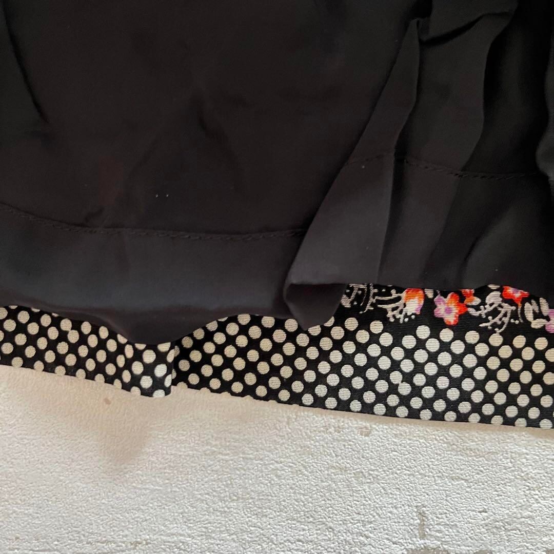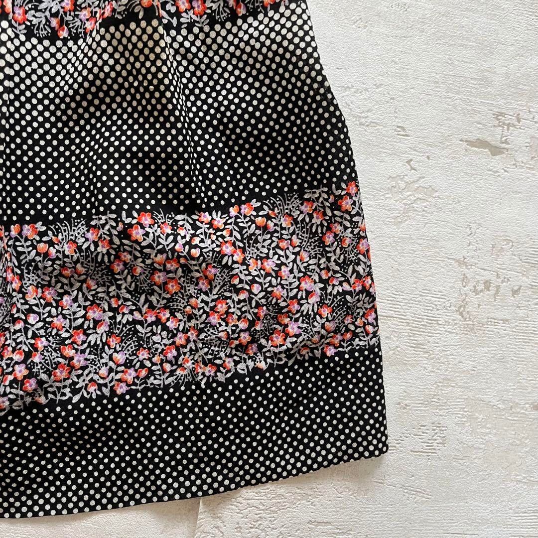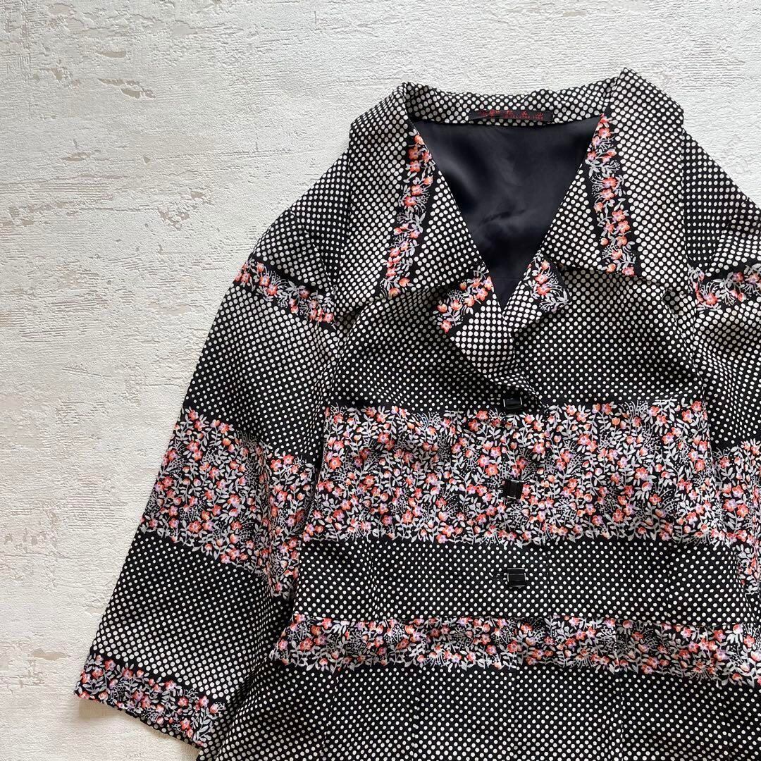 昭和レトロ花柄七分袖ロングワンピースドット柄オープンカラーブラックac