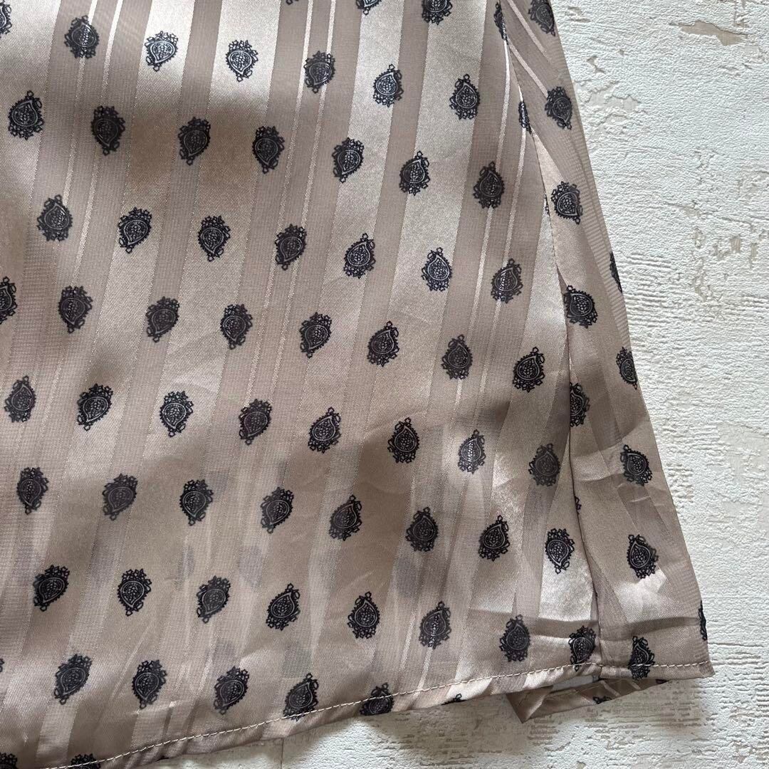 昭和レトロパターン柄長袖ロングワンピース光沢素材かブラウンab