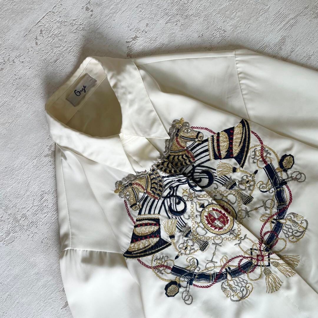 昭和レトロサーカス柄刺繍入り長袖ブラウス派手柄ホワイトフリーサイズS1