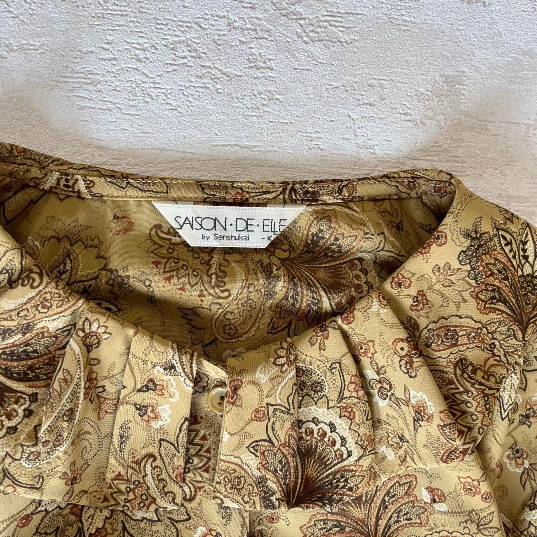 昭和レトロ花柄長袖ブラウスペダルカラー風総柄ブラウンフリーサイズq1