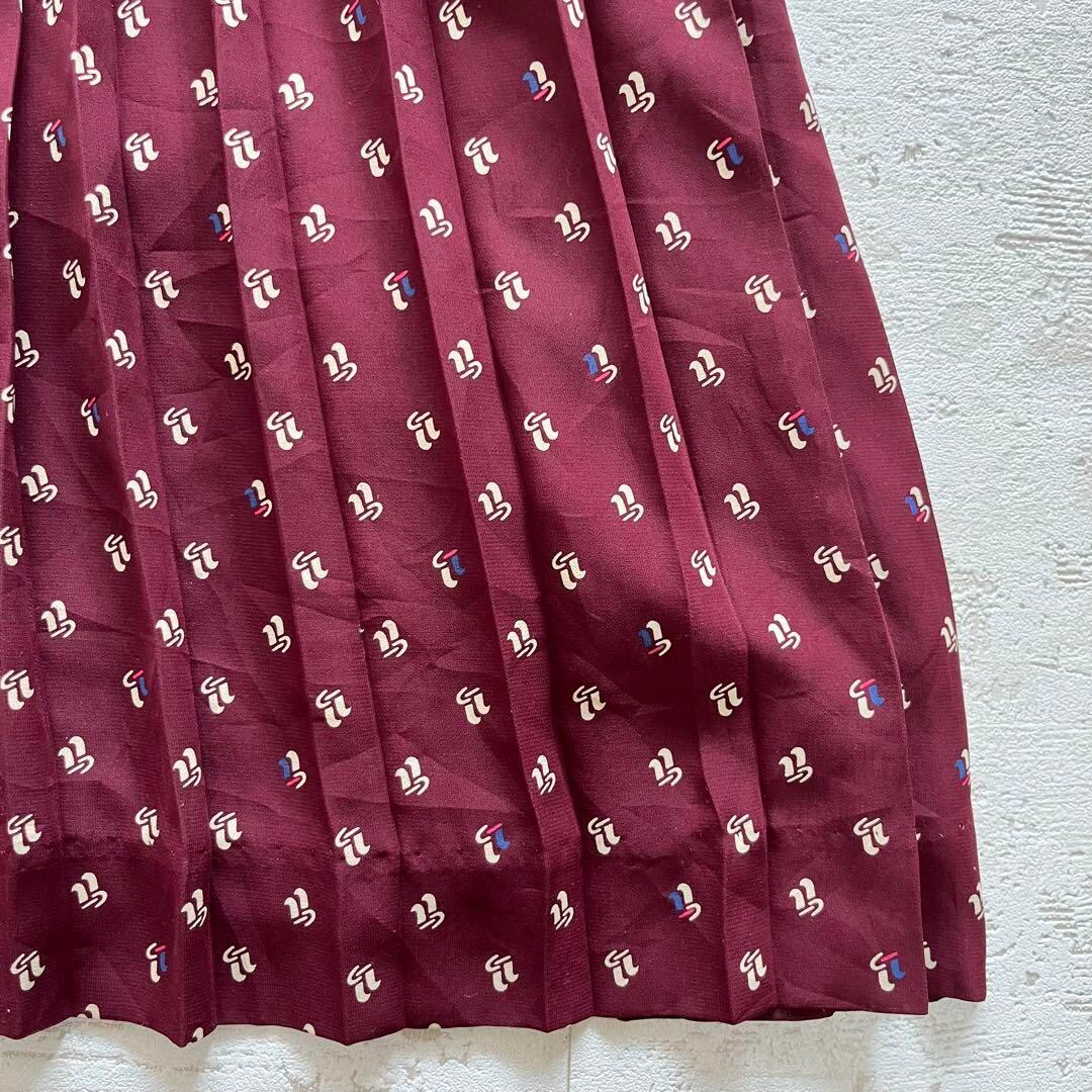 昭和レトロパターン柄長袖ロングワンピース総柄バーガンディ9号P2