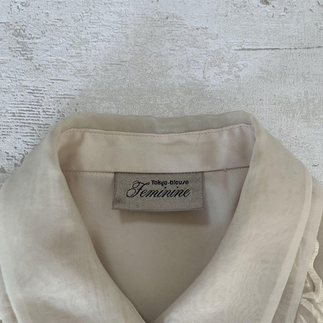 昭和レトロ立体花柄刺繍入り長袖ブラウス二重襟光沢クリームaf