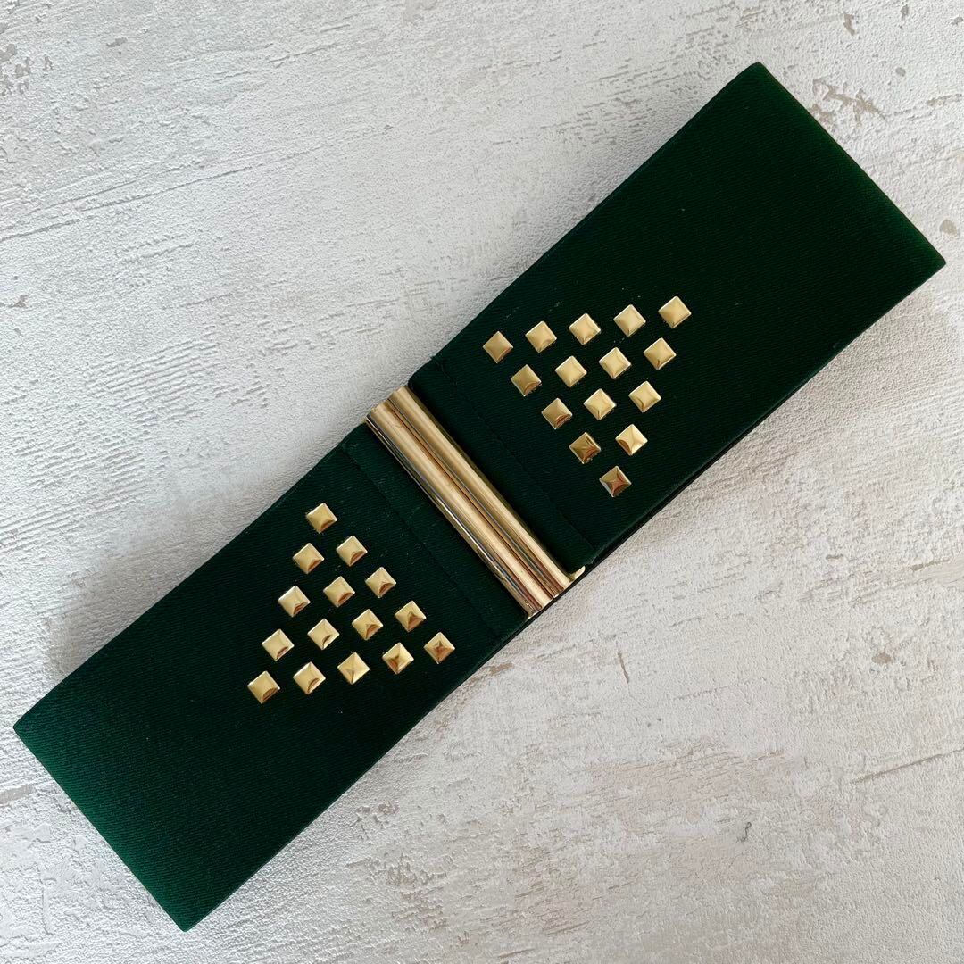 昭和レトロ極太ゴムベルトゴールド留め具グリーン調整不可