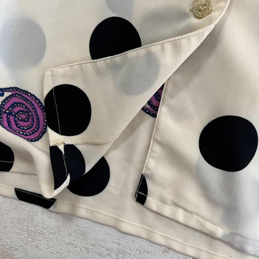 昭和レトロドット柄半袖ブラウスゆったりデザイン透け素材ホワイトb1