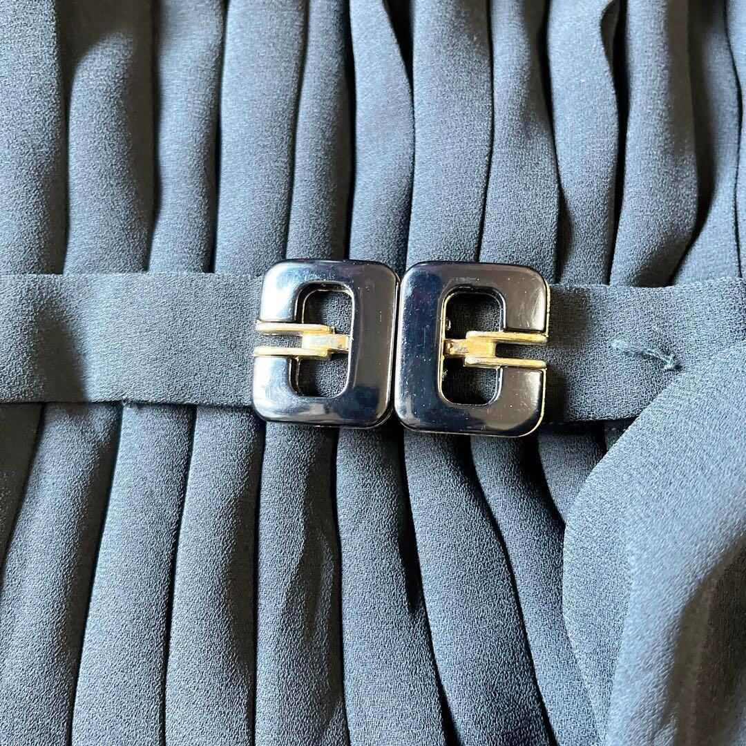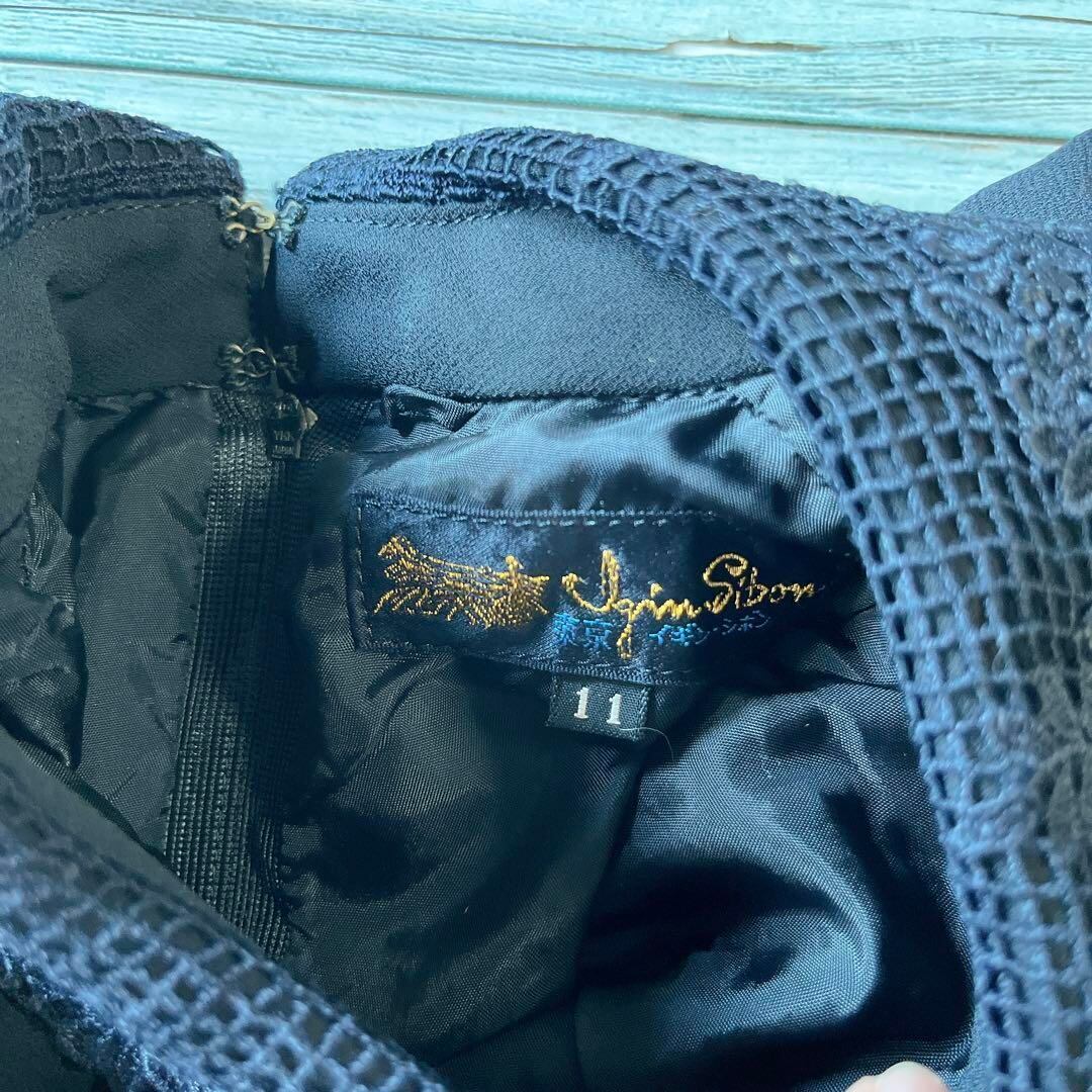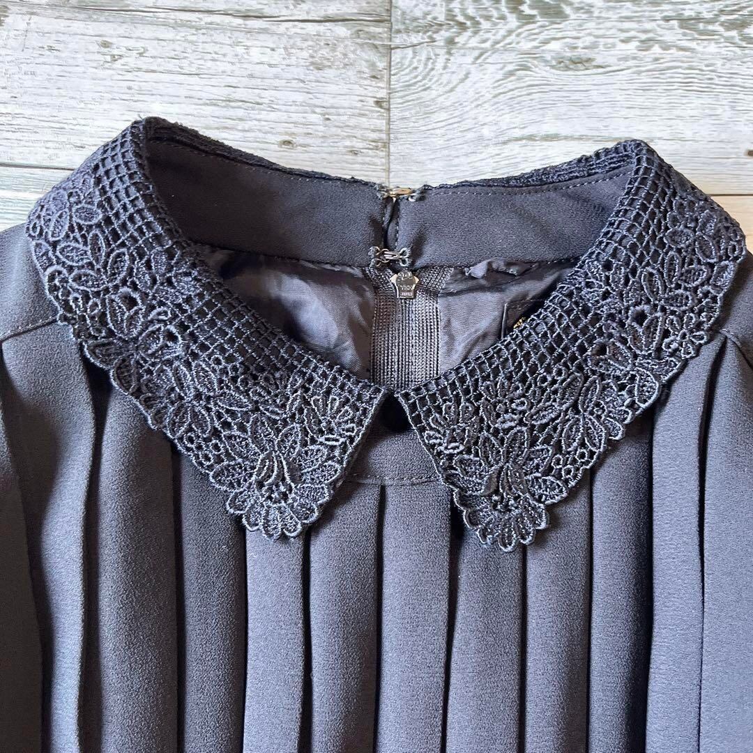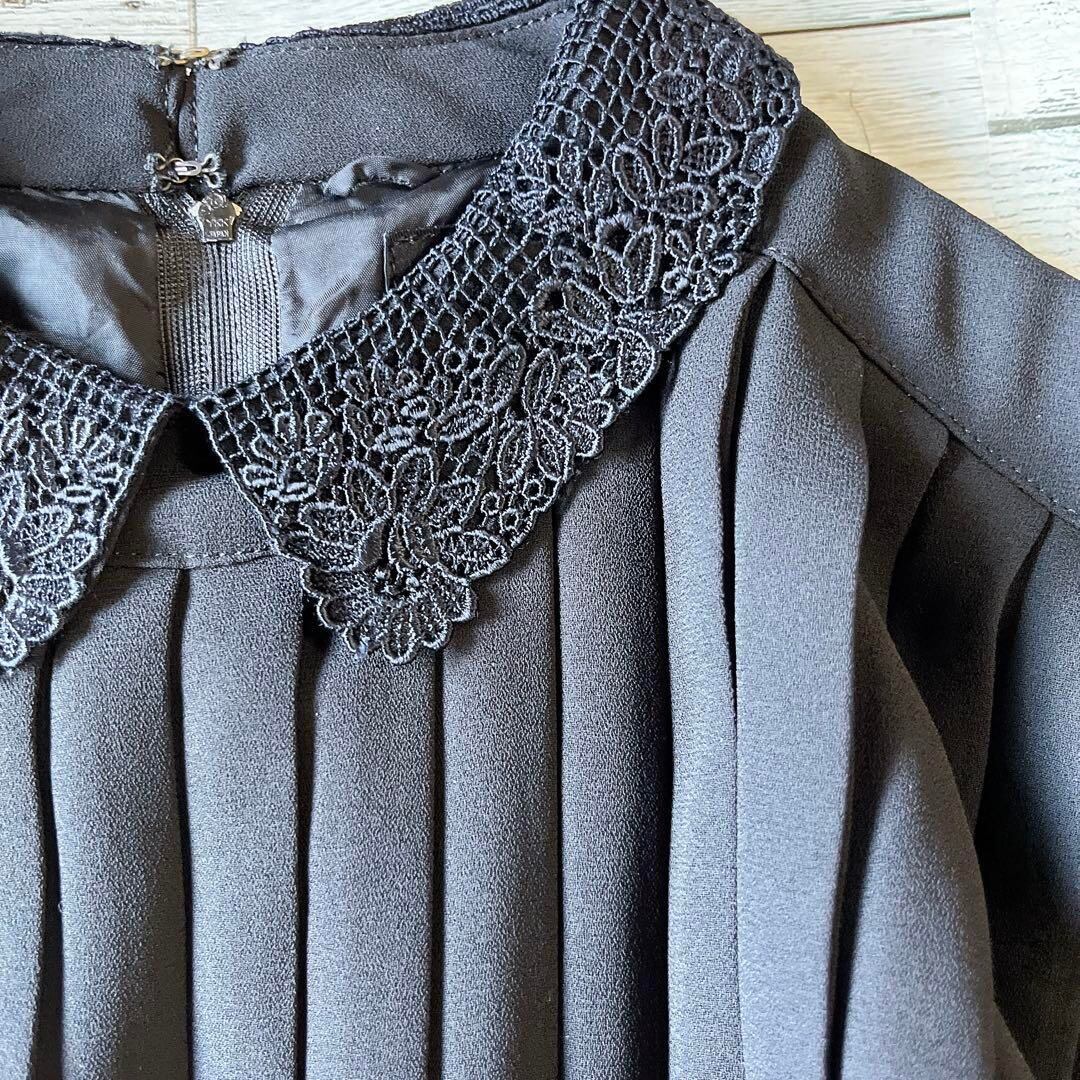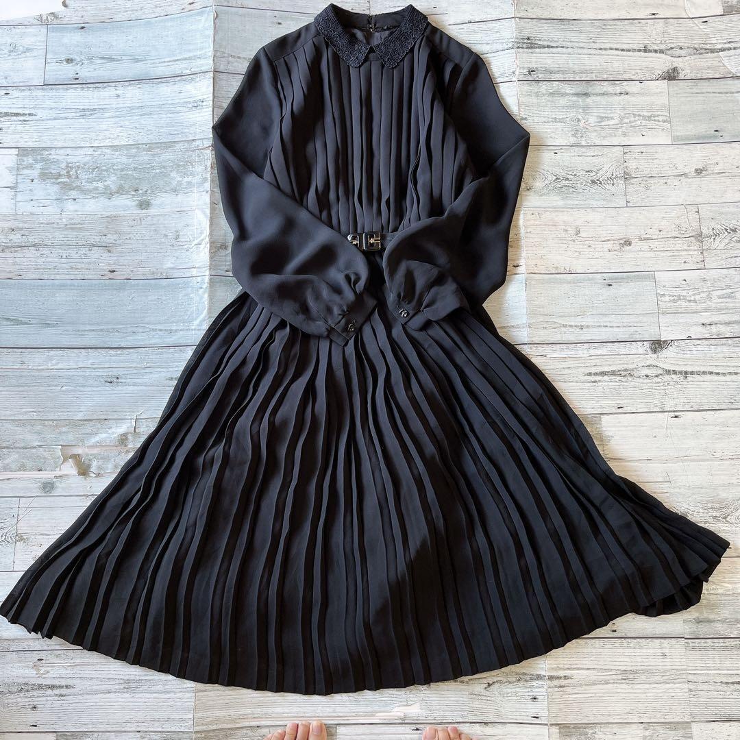 東京イギン花柄刺繍入り襟長袖ロングワンピースプリーツフォーマルベルト付11号ae