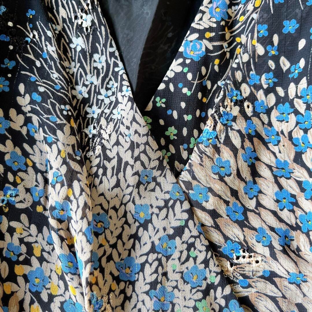 昭和レトロカシュクール半袖ロングワンピースラメライン入りフリーサイズW1
