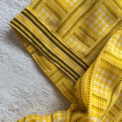 昭和レトロパターン柄半袖ロングワンピース千鳥格子柄透素材イエローフリーサイズF3