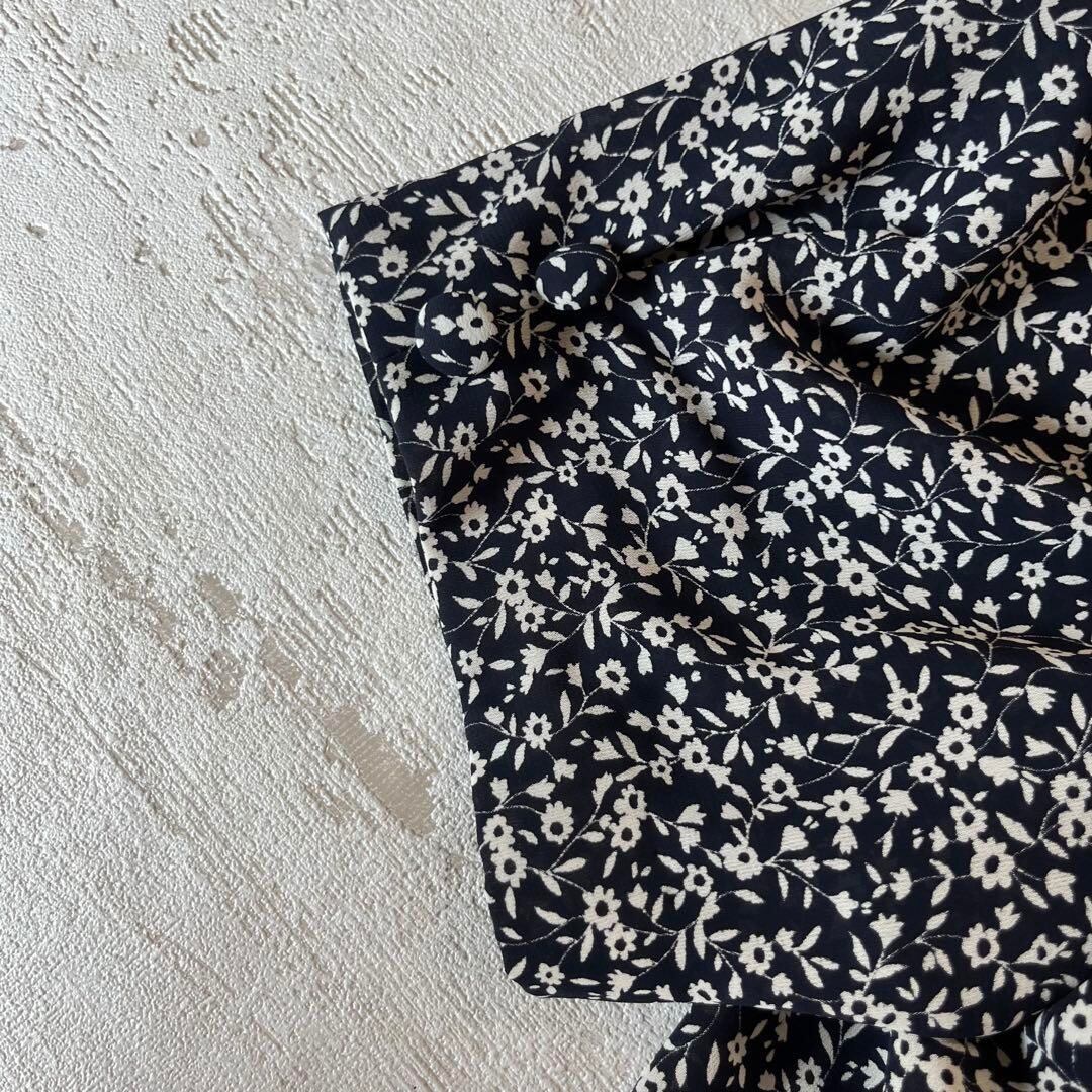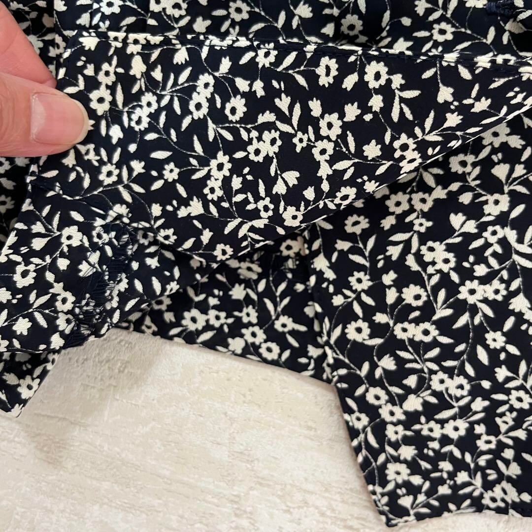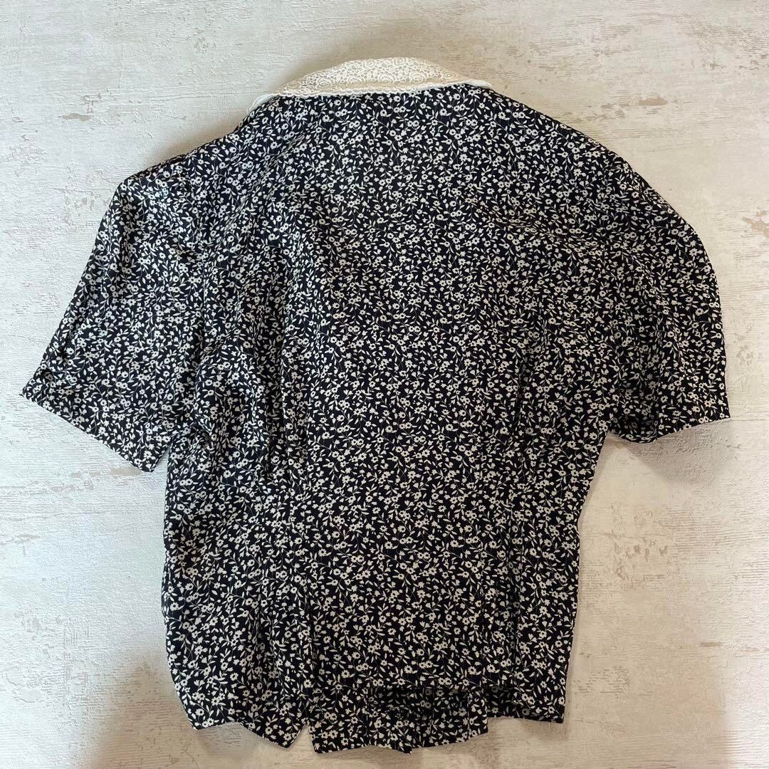 昭和レトロ花柄刺繍入り半袖ブラウスダブルボタン透け素材ブラック9号q1