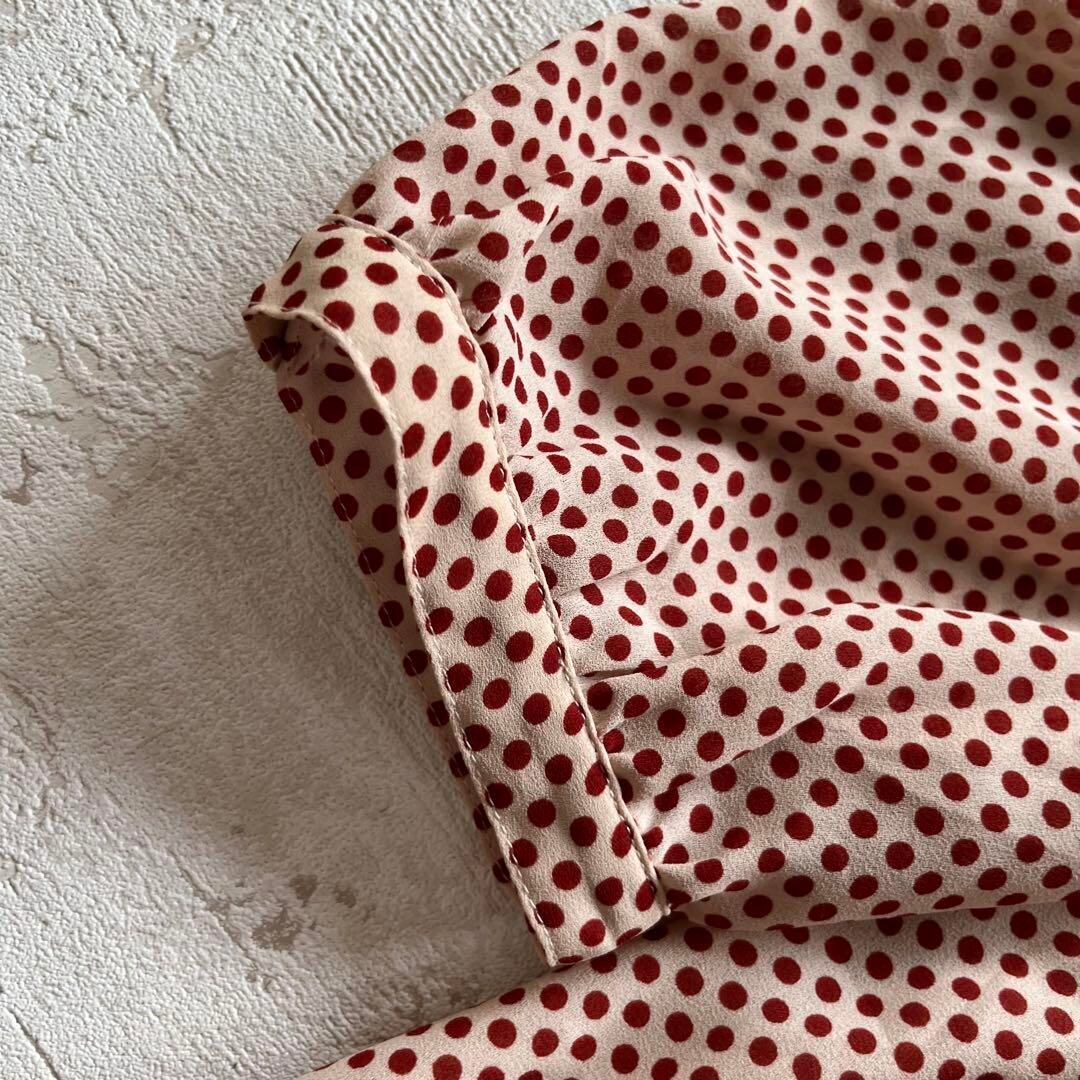 昭和レトロドット柄半袖ロングワンピーススクエアネックベージュフリーサイズL1