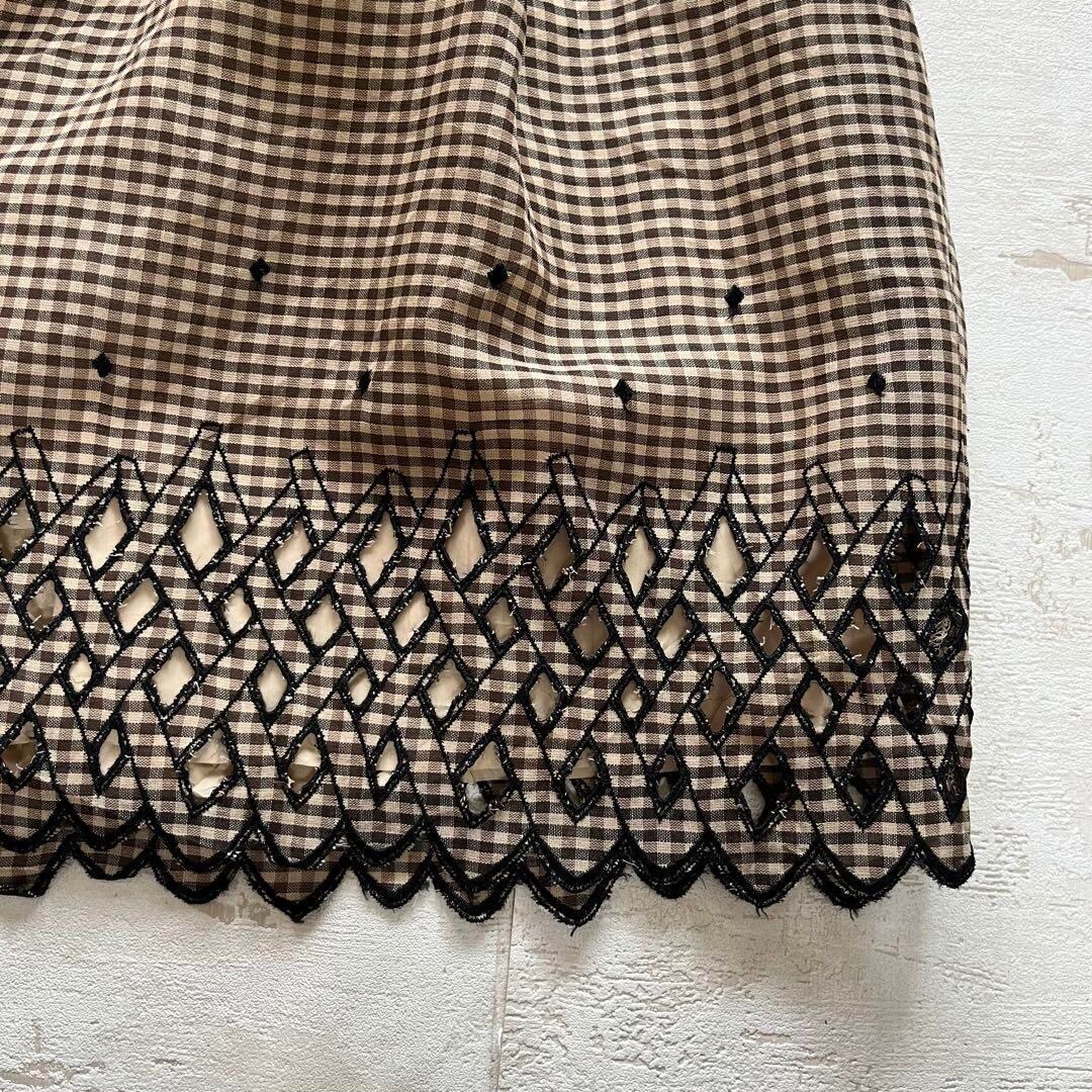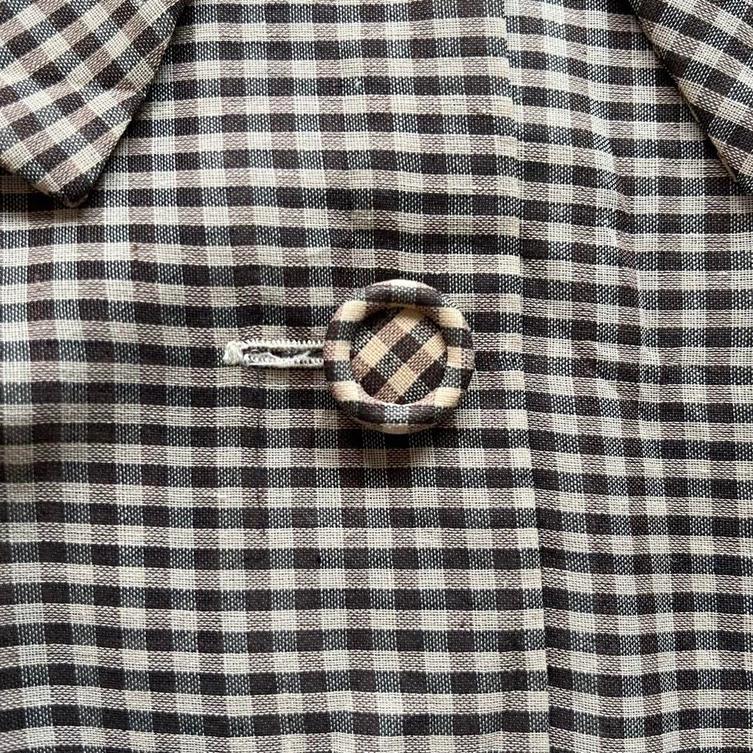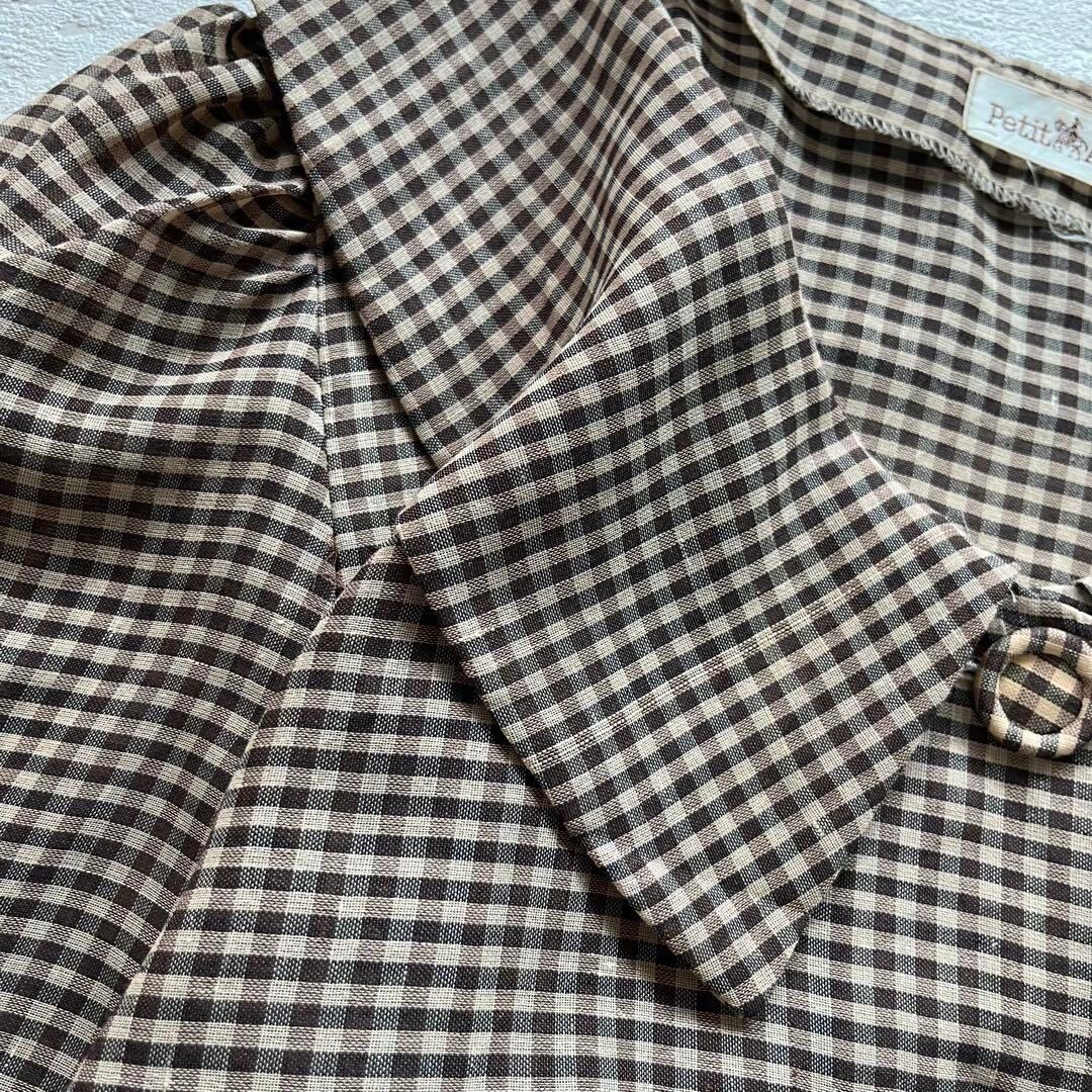 昭和レトロ大きめカラー半袖ロングワンピース切り込み風デザインブラウン9号P1