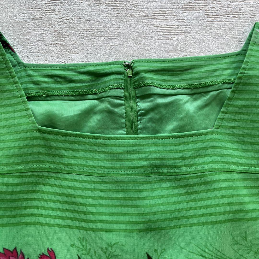 昭和レトロボタニカルノースリーブロングワンピースボーダーグリーンフリーサイズf1