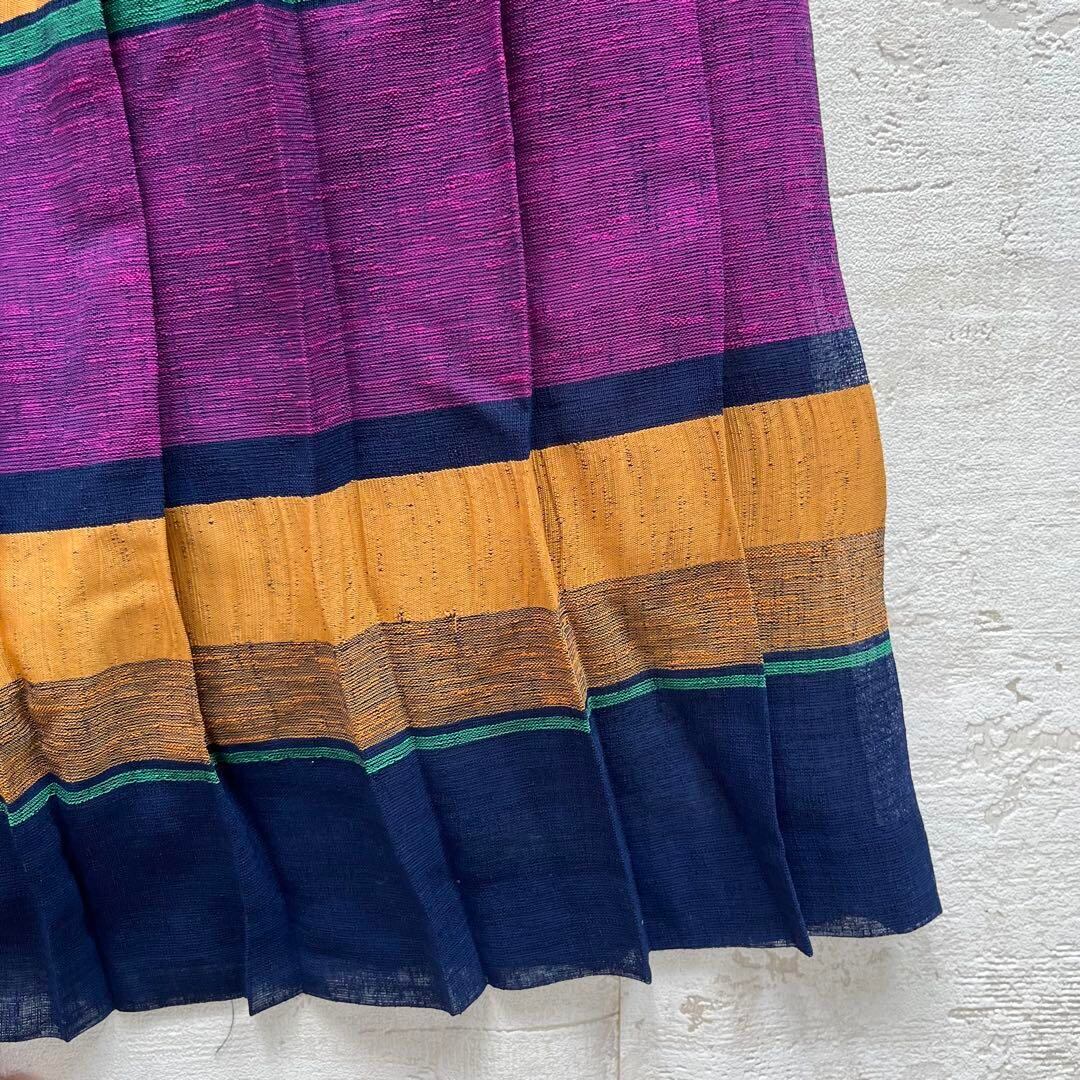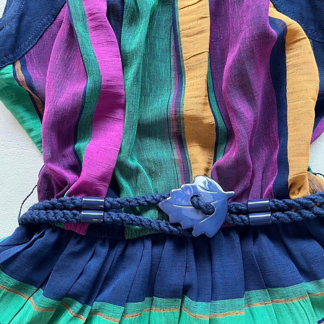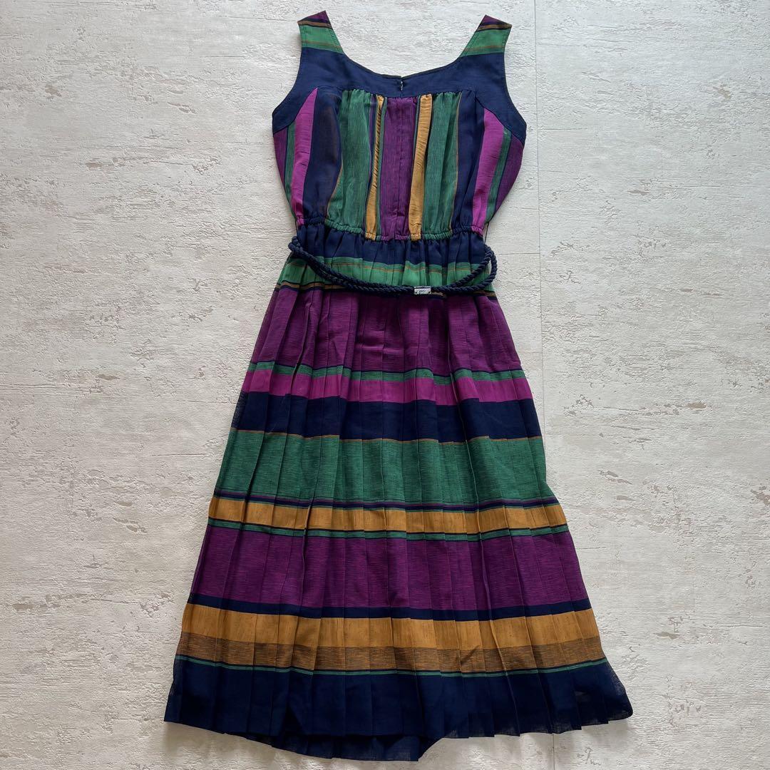 昭和レトロカラフルボーダーノースリーブロングワンピース腰紐付き11号n1