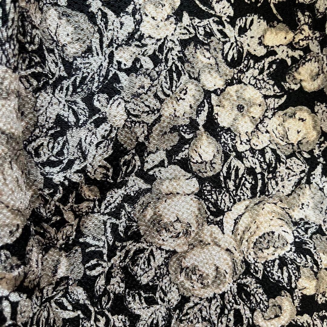 昭和レトロバラ柄七分袖ロングワンピース肩パッド付きベルト付きモノトーン13号D