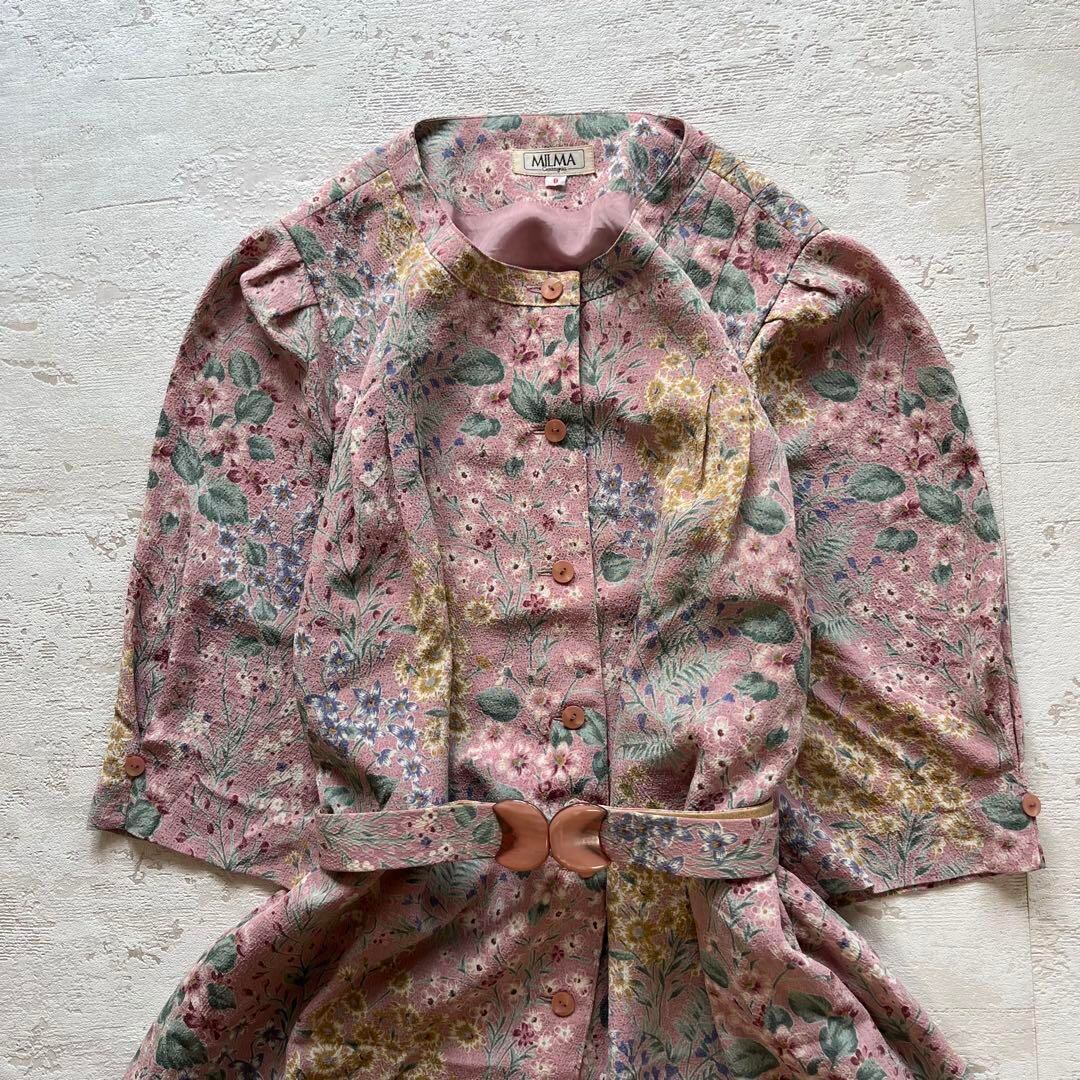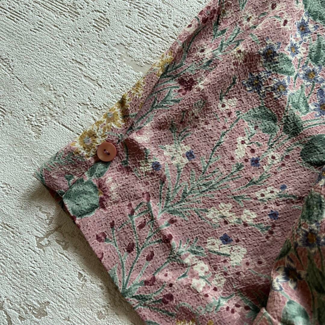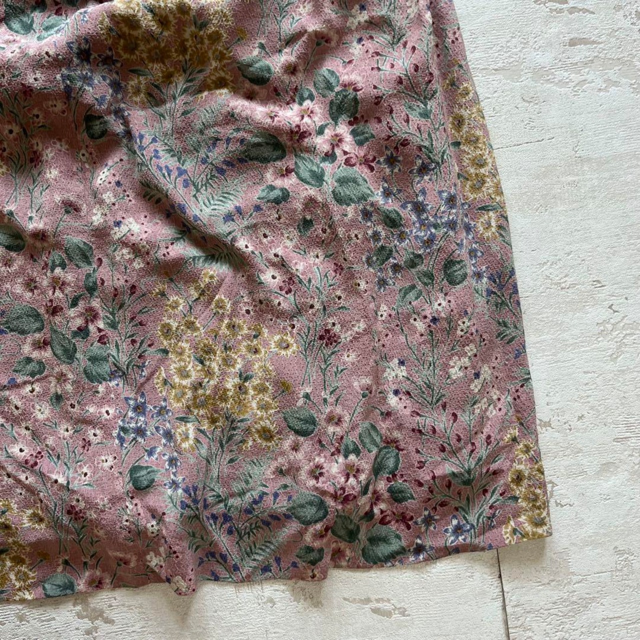 昭和レトロ草木柄半袖ロングワンピースベルト付き9号花柄ヴィンテージピンクF1