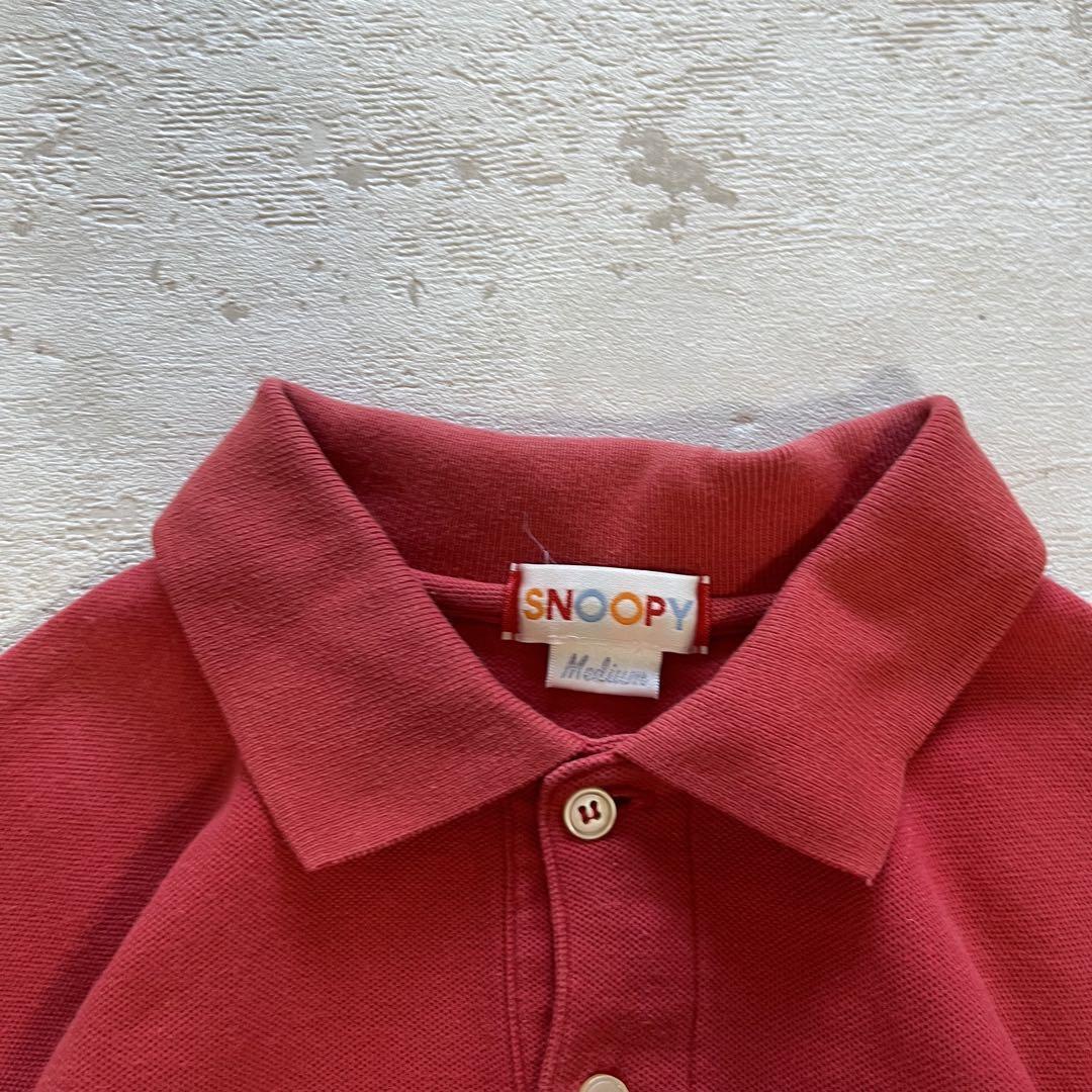スヌーピーの刺繍が胸元に施された可愛らしい赤のポロシャツです。ハートマークの入ったスヌーピーがワンポイントで映え、古着好きやキャラクター好きにぴったりの一枚。ユニセックスで着用でき、サイズ感はメンズL相当。レトロな雰囲気と鮮やかなカラーが夏のコーデにもマッチします。