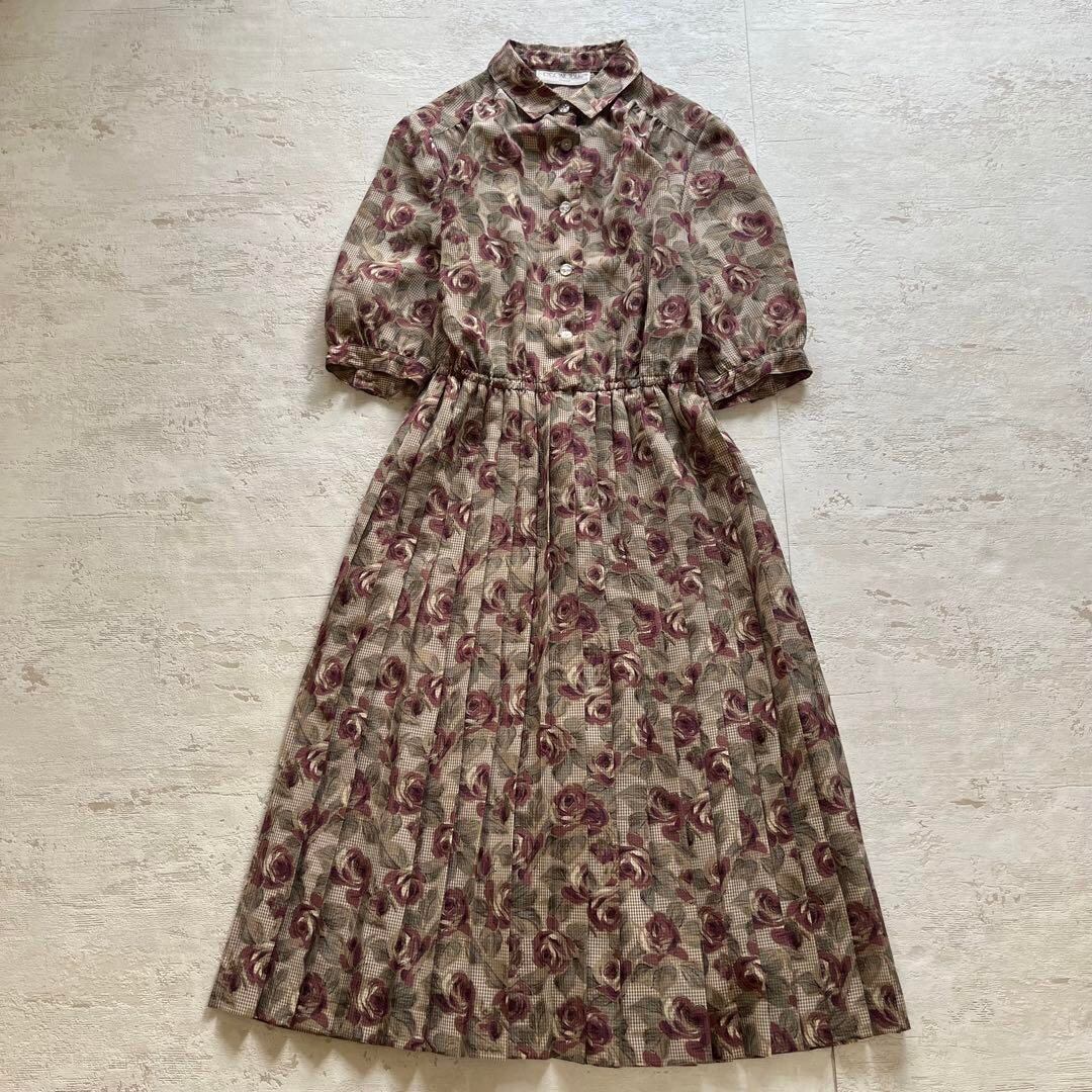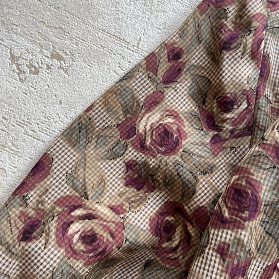 クラシカルな花柄ワンピースです。落ち着いたチェック地にバラ柄が映える、大人可愛い一枚。ロング丈で体型カバーも◎ ウエストはゴム仕様でラクな着心地、後ろファスナーで着脱もスムーズです。ナチュラル系やレトロコーデ好きな方にぴったり。
