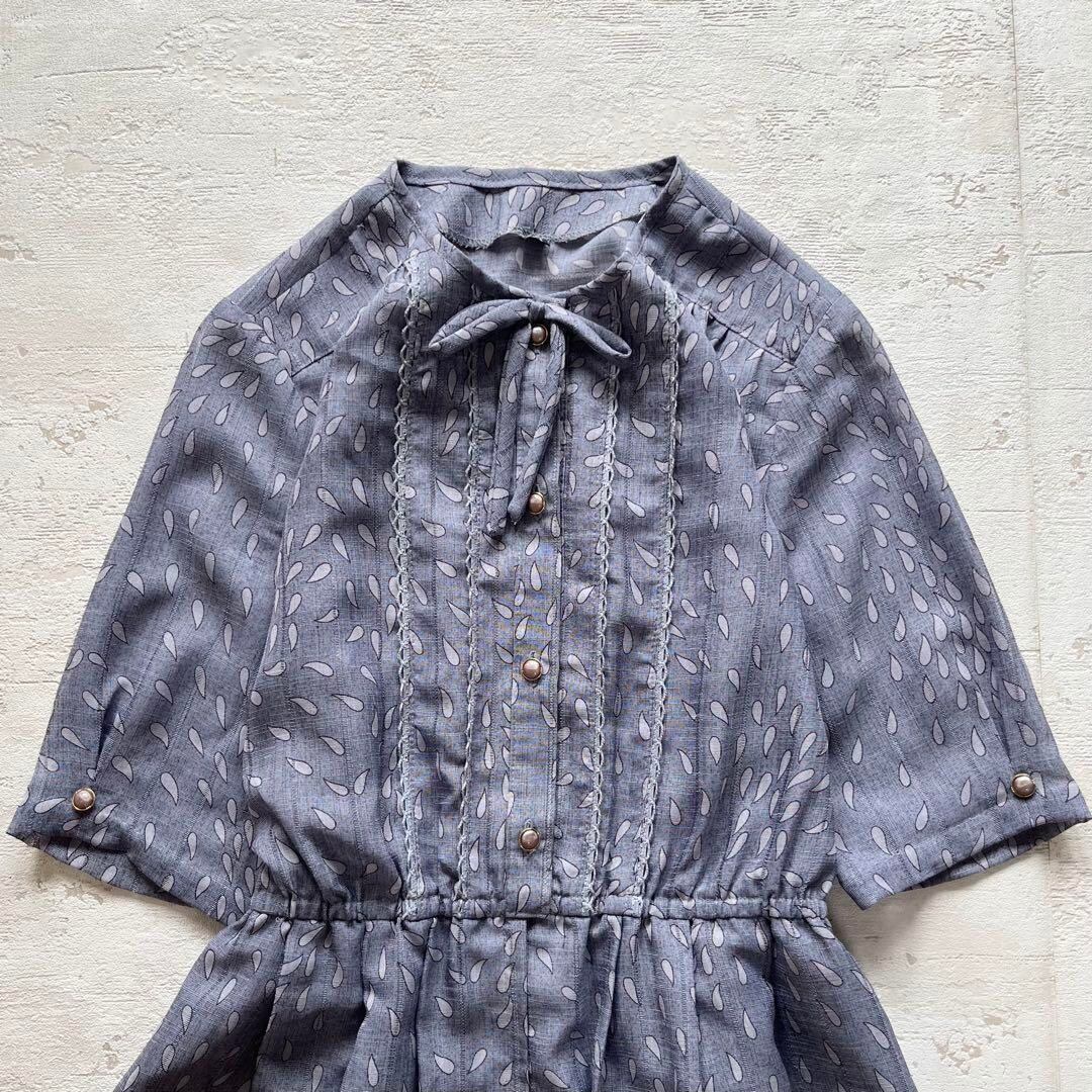 落ち着いたグレー地に、ドット風のリーフ柄をあしらった大人可愛いワンピースです。首元にはリボンタイが付いており、女性らしさを引き立てる上品なデザイン。ウエスト部分はギャザー仕様で、自然にくびれを作りつつ、ゆったりした着心地を叶えます。五分袖なので春から秋まで長く活躍し、冷房対策や日焼け防止にも◎。カジュアルにはスニーカー、きれいめにはパンプスやブーツと相性抜群。デート、カフェ巡り、旅行など幅広いシーンにおすすめです。シンプルなのに存在感があり