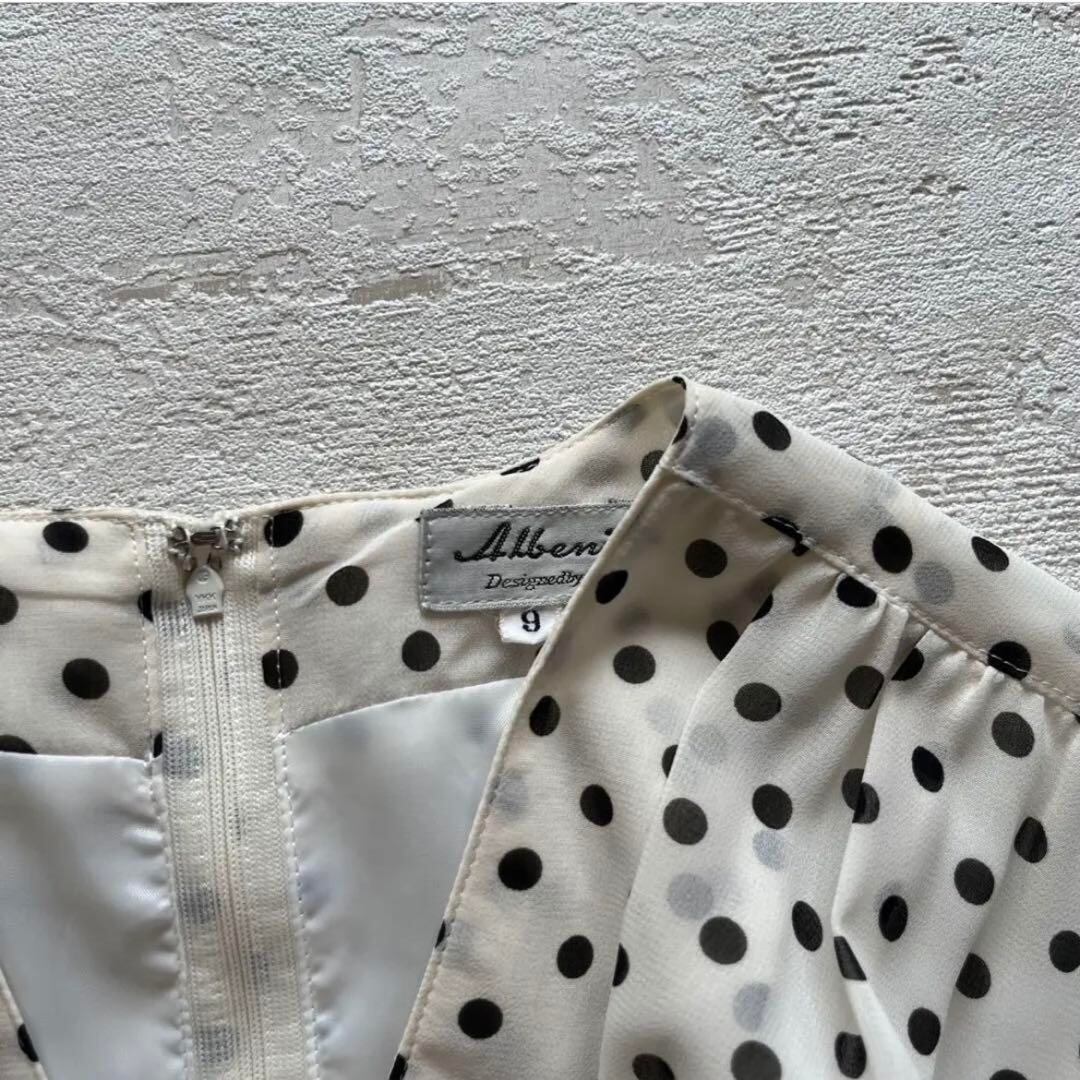 白地にブラックのドット柄が可愛らしい、レトロ感漂う長袖ワンピースです。胸元には上品なブラックレースの装飾が施され、Vネックデザインがフェミニンな印象をプラス。付属のベルトでウエストマークすることで、スタイルアップ効果も期待できます。軽やかなフレアスカートは歩くたびにふんわりと揺れ、春や秋のお出かけにぴったり。デートやカフェ巡り、特別なお呼ばれシーンにもおすすめです。タイツやブーツと合わせれば冬も◎。古着好きやレトロガーリースタイルが好きな方にぜひ。