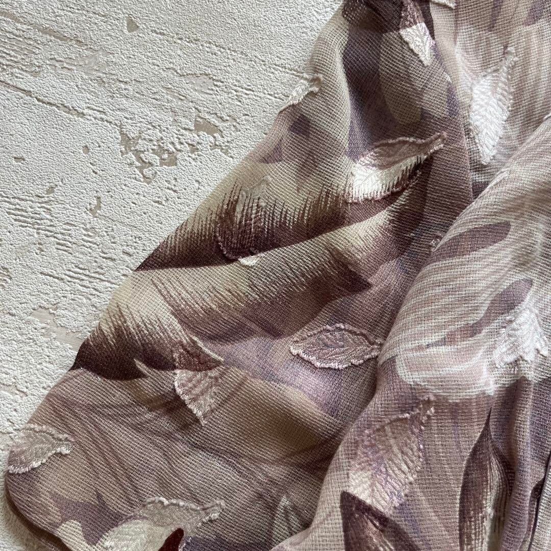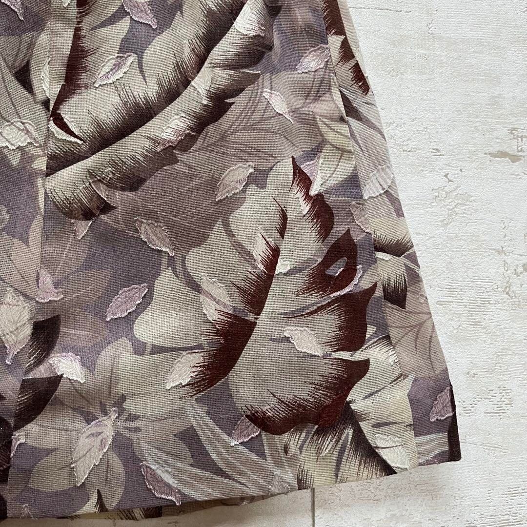 昭和レトロ感漂う、大人可愛いリーフ柄のロングワンピースです。落ち着いたブラウン系カラーと上品な光沢のある生地感が特徴で、くるみボタン風の飾りがクラシカルな雰囲気を演出します。柔らかな素材で着心地が良く、動くたびに表情が変わる美しい柄が魅力。お出かけやお食事会、フォーマルな場にもおすすめです。ヴィンテージ感のあるデザインは一点物感があり、周りと被らない特別な一着。秋冬はブーツやカーディガンと合わせて、春先は軽やかに一枚でお楽しみいただけます。