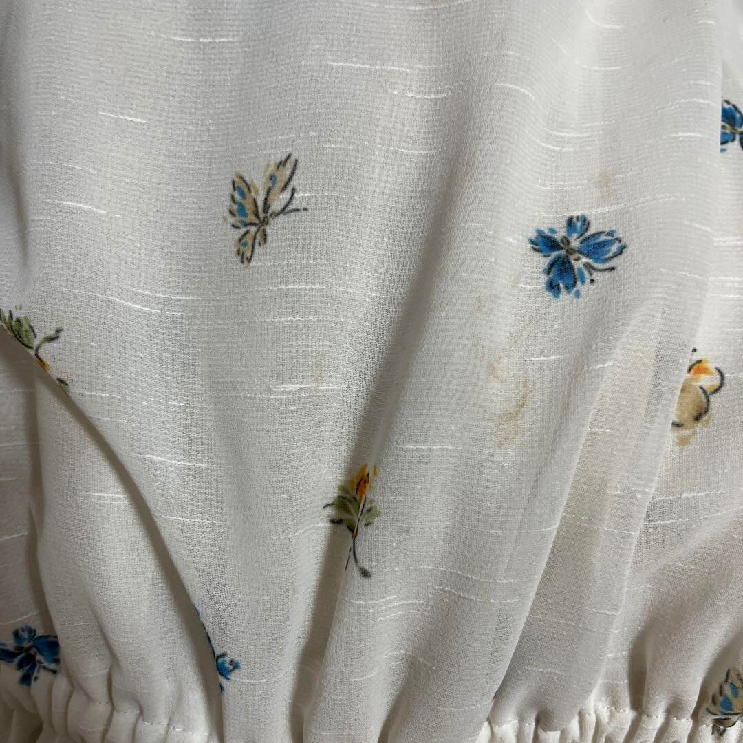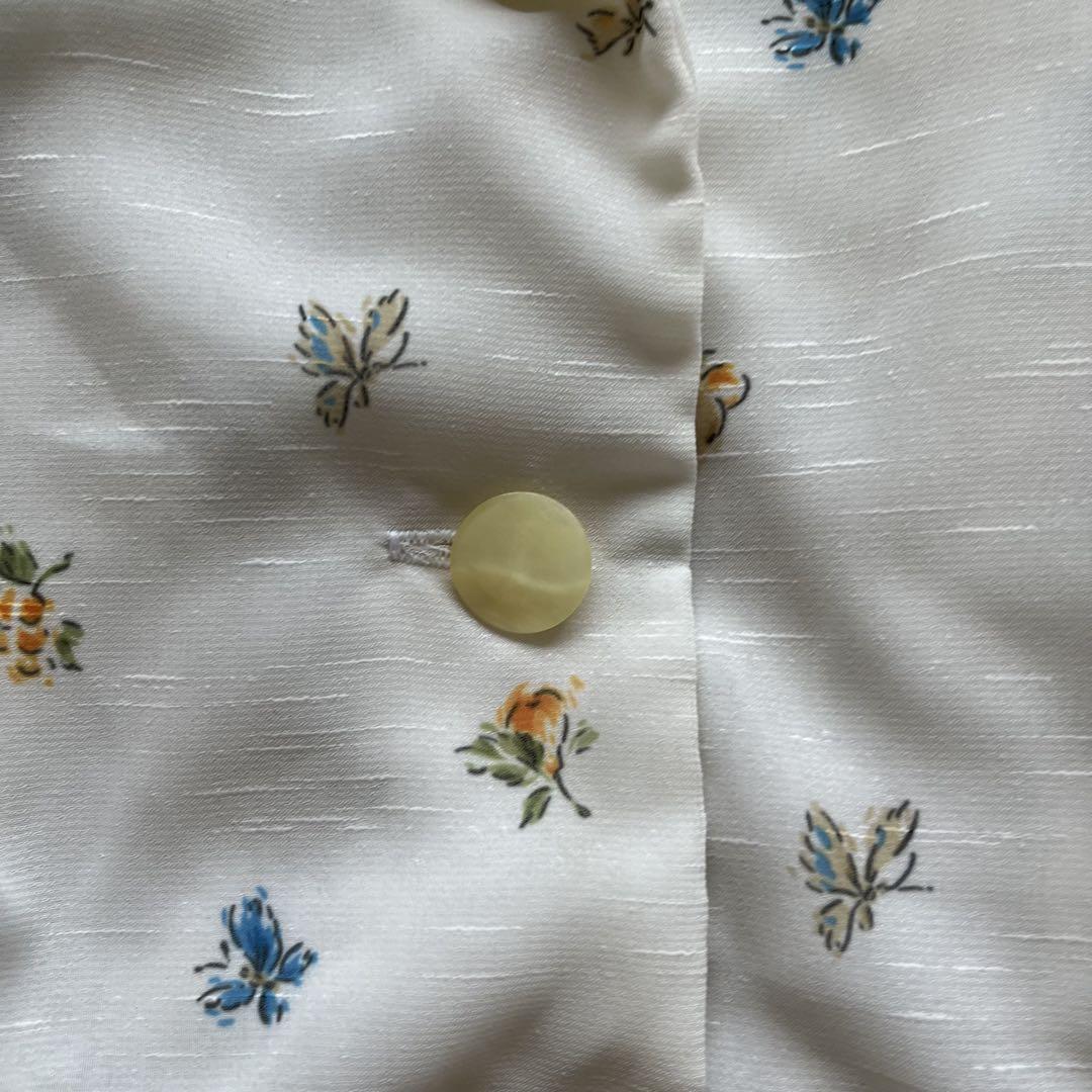 柔らかな白地に、ブルーやオレンジの花と蝶々の繊細なプリントが広がる、春夏にぴったりの半袖ワンピースです。ウエスト部分はゴム仕様で、自然なフィット感と快適な着心地を実現。程よいVネックと開襟デザインが首元をすっきり見せ、上品な印象を与えます。ミディ丈のスカートは動くたびに軽やかに揺れ、フェミニンさを引き立てます。ナチュラルガーリーやレトロコーデ、デートやお出かけ、旅行先でも活躍する一枚。涼しげで肌触りの良い生地感が、