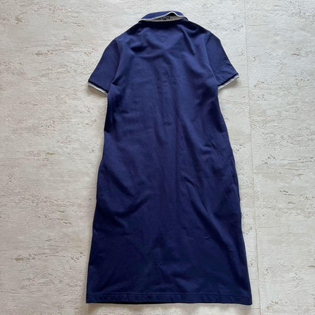 LACOSTE SPORT(ラコステスポーツ)の半袖ポロシャツワンピースです。落ち着いたネイビーカラーにホワイトのパイピングが映える、シンプルでスポーティーなデザイン。胸元には定番のワニロゴ刺繍入りでブランドらしさを感じられます。鹿の子素材で通気性がよく、春夏のカジュアルスタイルやアクティブなお出かけにぴったり。ストレートラインのシルエットで体型を選ばず、1枚でさらっと着られる便利なアイテムです。スニーカーやサンダルと合わせれば、大人のリラックスコーデが完成します。