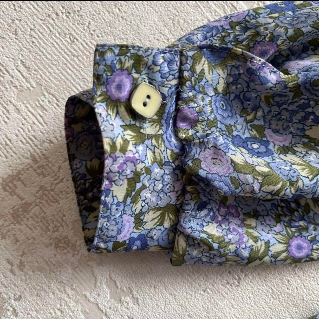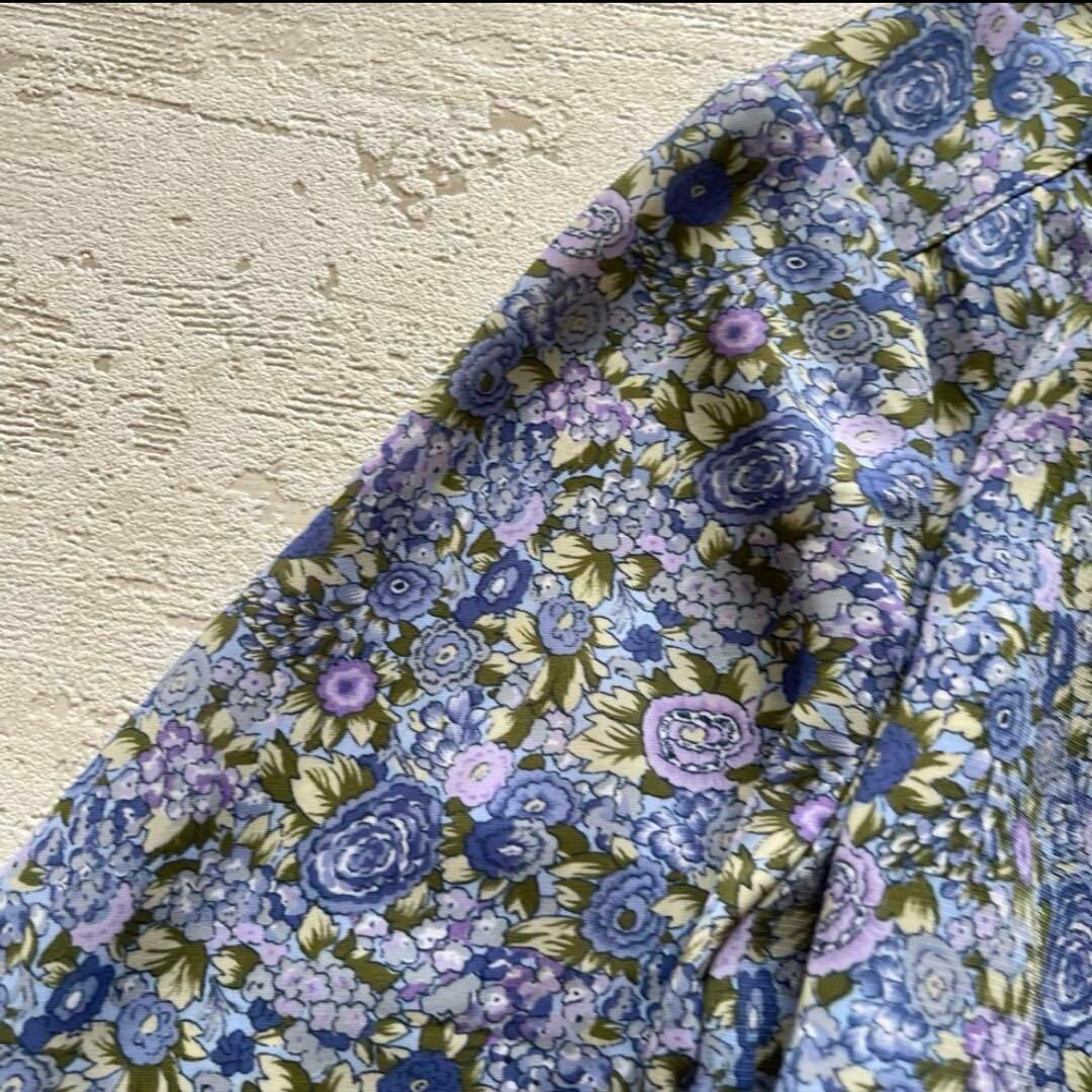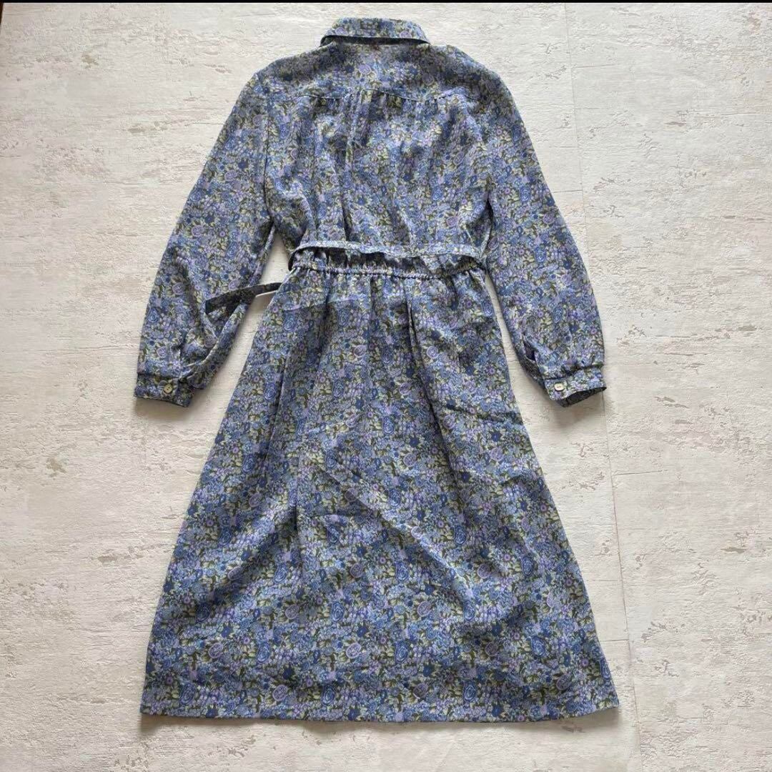 昭和レトロな雰囲気漂う花柄の長袖シャツワンピースです。ブルーを基調にした総柄プリントが華やかで、1枚で主役になれるアイテム。ウエストベルト付きでシルエットの調整も可能、女性らしいラインを綺麗に演出してくれます。ヴィンテージ感のある落ち着いた色合いは、大人っぽいコーディネートにもピッタリ。秋冬はニットやカーディガンとの重ね着、春はさらっと一枚で着用でき、オールシーズン楽しめる一枚です。レトロファッション好きや古着コーデにおすすめです。