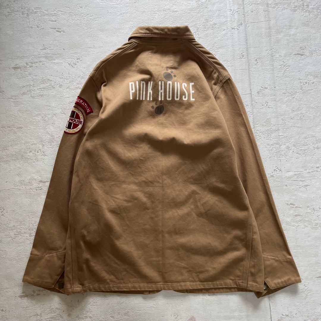ピンクハウス(PINK HOUSE)のベアワッペン付きジャケットです。フロントや袖に施された可愛いテディベアやブランドロゴのワッペンが存在感抜群。丈夫なコットン素材で仕立てられており、ワークジャケットやカバーオール感覚で着用できます。背面には大きく「PINK HOUSE」のロゴがプリントされ、どの角度から見ても印象的なデザイン。ユニセックスで着用できるサイズ感のため、男女問わずおすすめです。デニムやロングスカートと合わせてレトロコーデに◎。希少なデザインのためコレクションや普段使いにも活躍します。