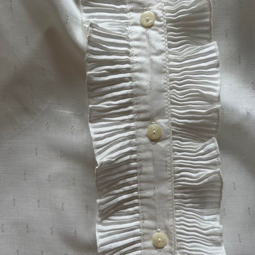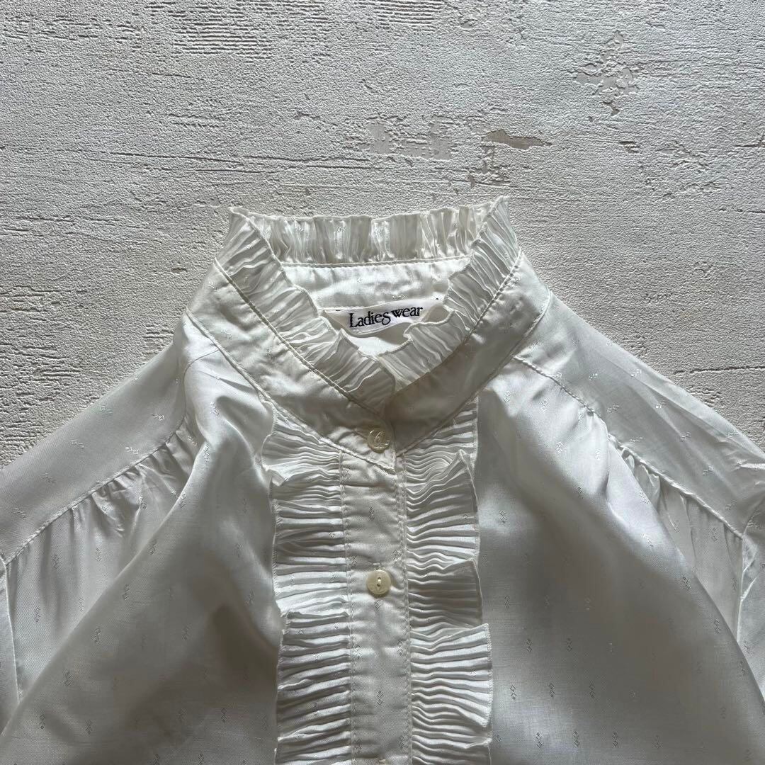 クラシカルな雰囲気漂う、上品なアイボリーカラーのフリルブラウスです。