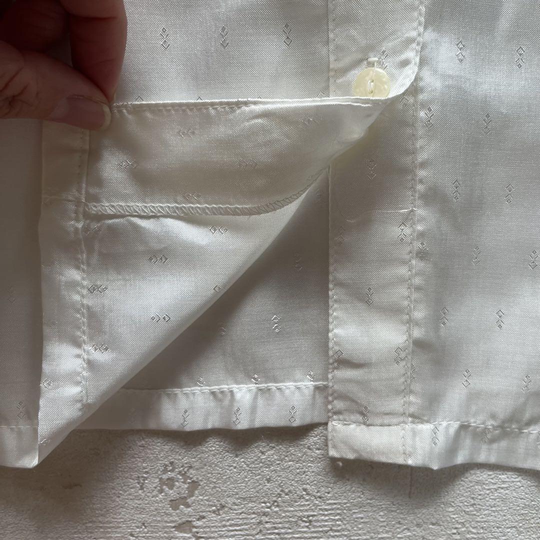 光沢のあるとろみ素材で、肌触りがやわらかく、首元や前立て部分の繊細なフリルデザインが女性らしさを引き立てます。
